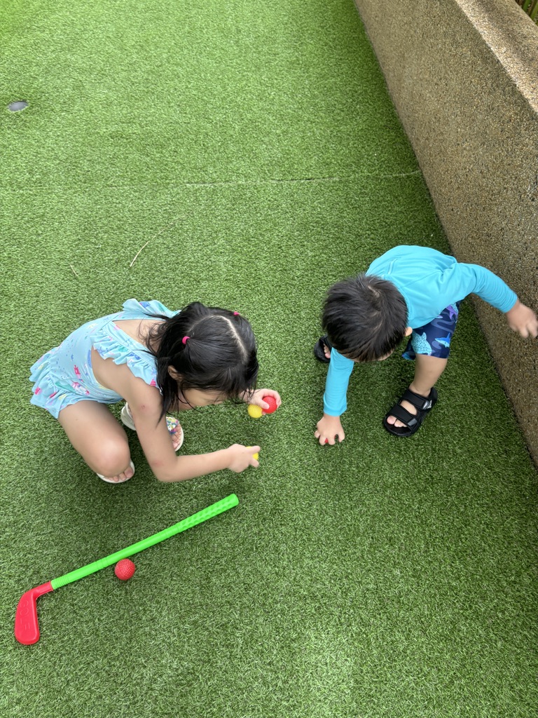 We also stumbled upon a mini golf area, and they had a lot of fun trying to play!