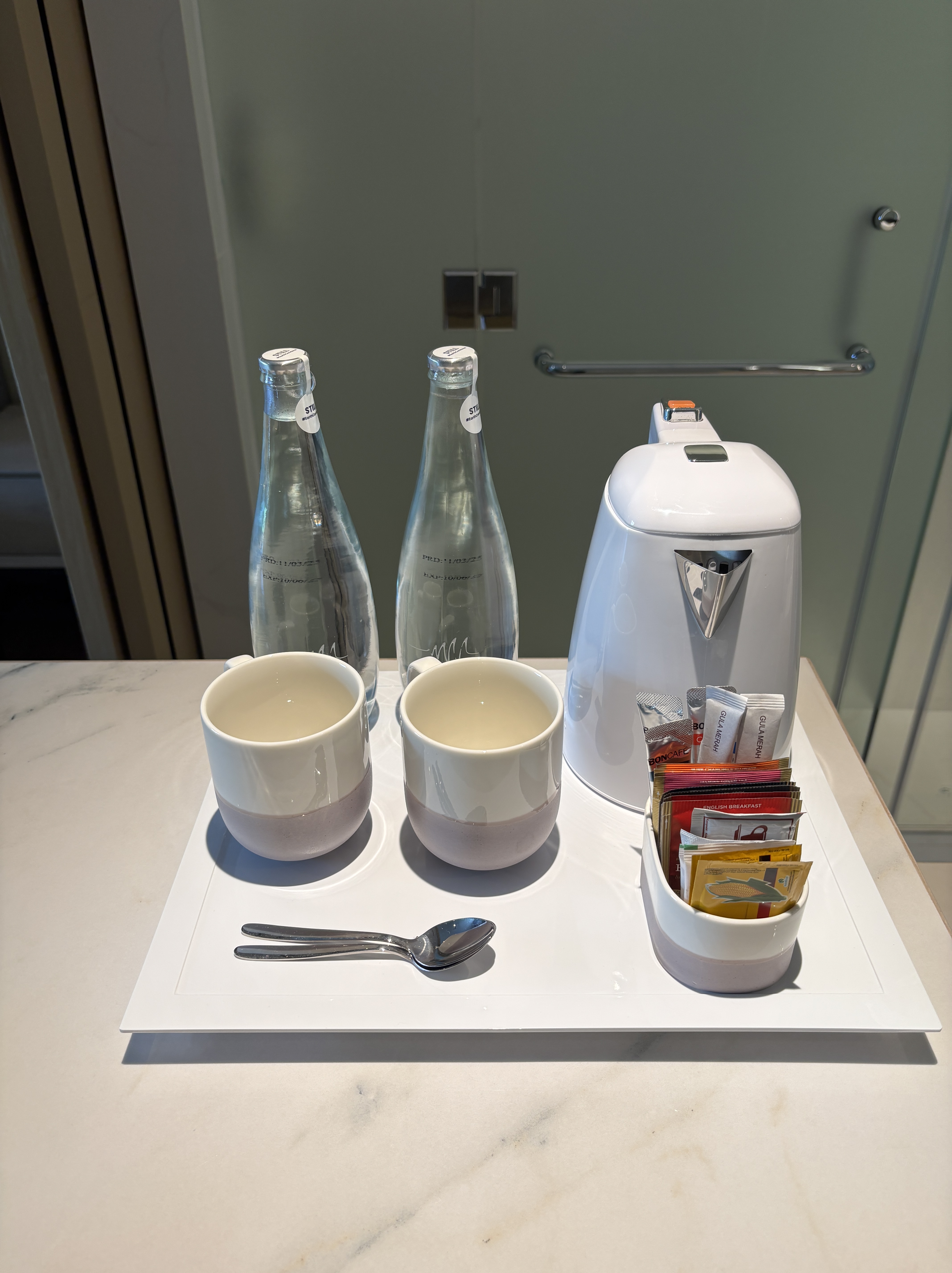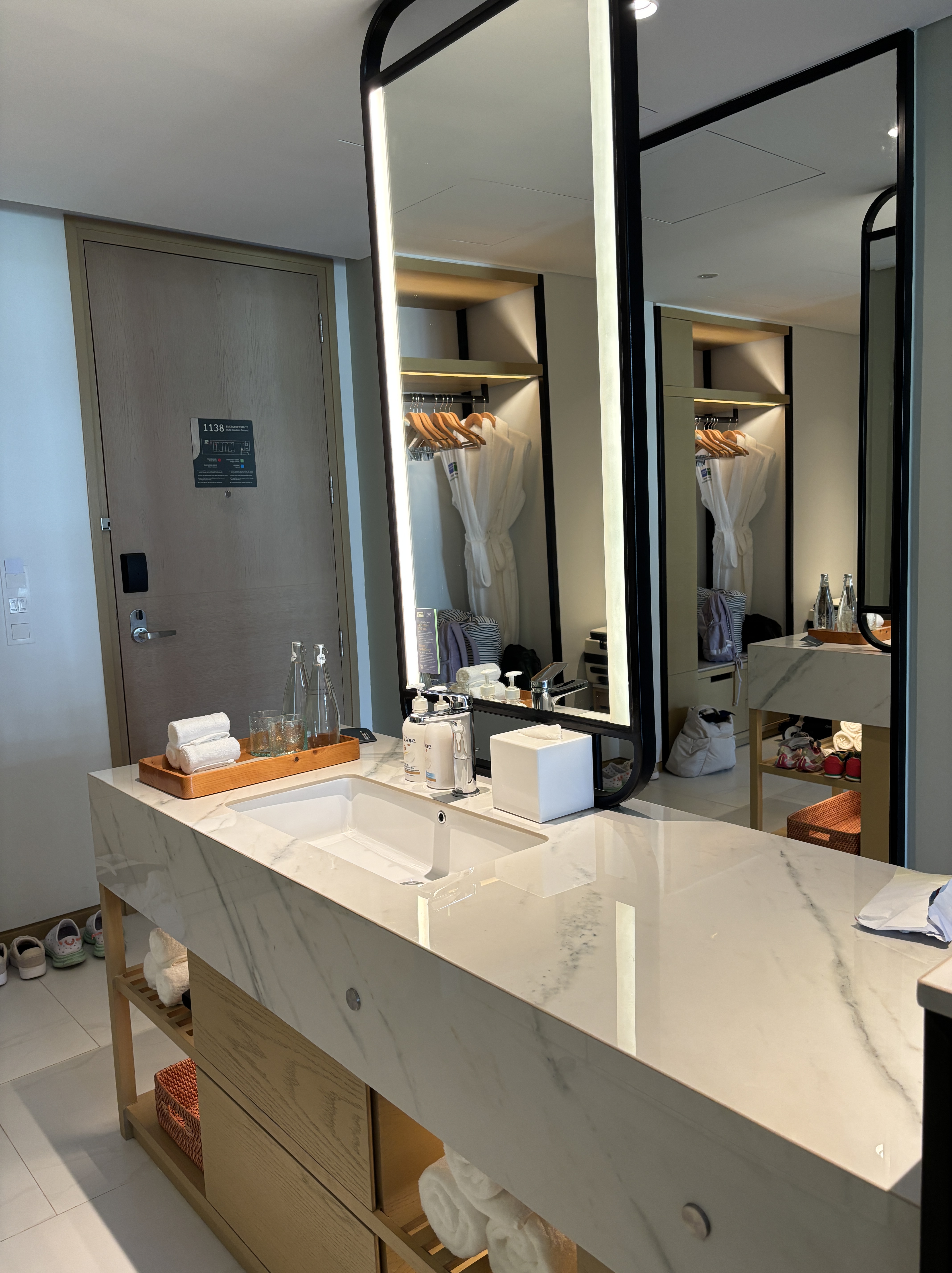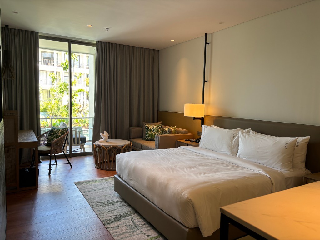The room itself was spanking new — beautiful, clean, and thoughtfully designed. Later in the day, the hotel staff would set up an extra bed for our eldest, which fit comfortably without making the space feel cramped.