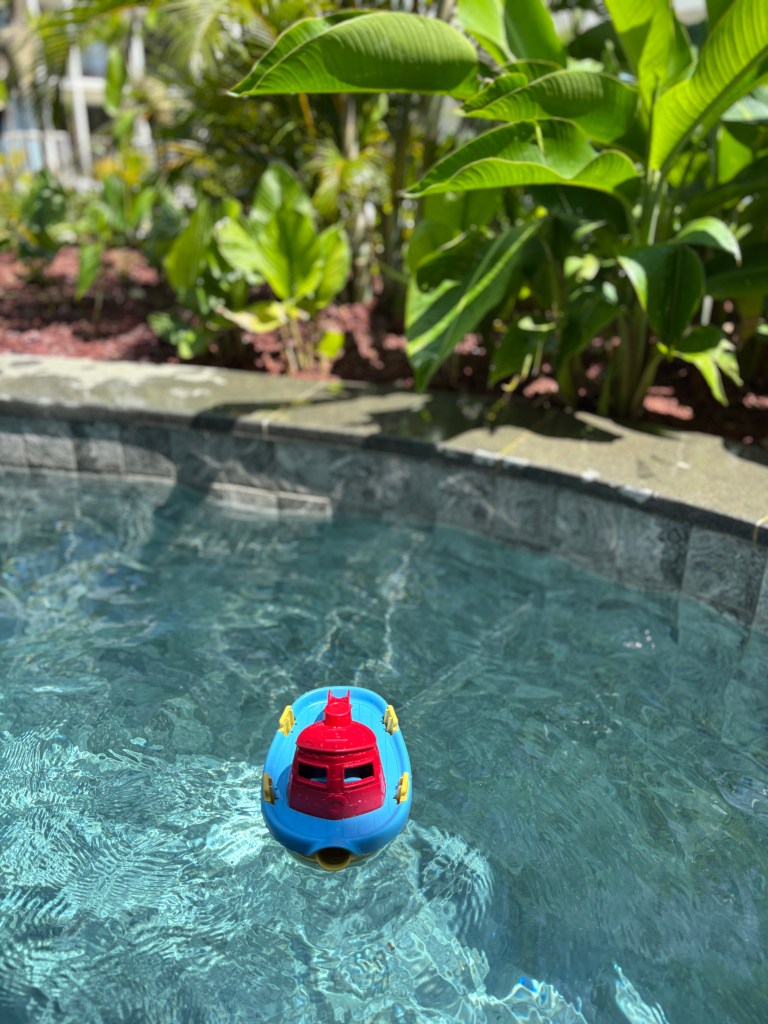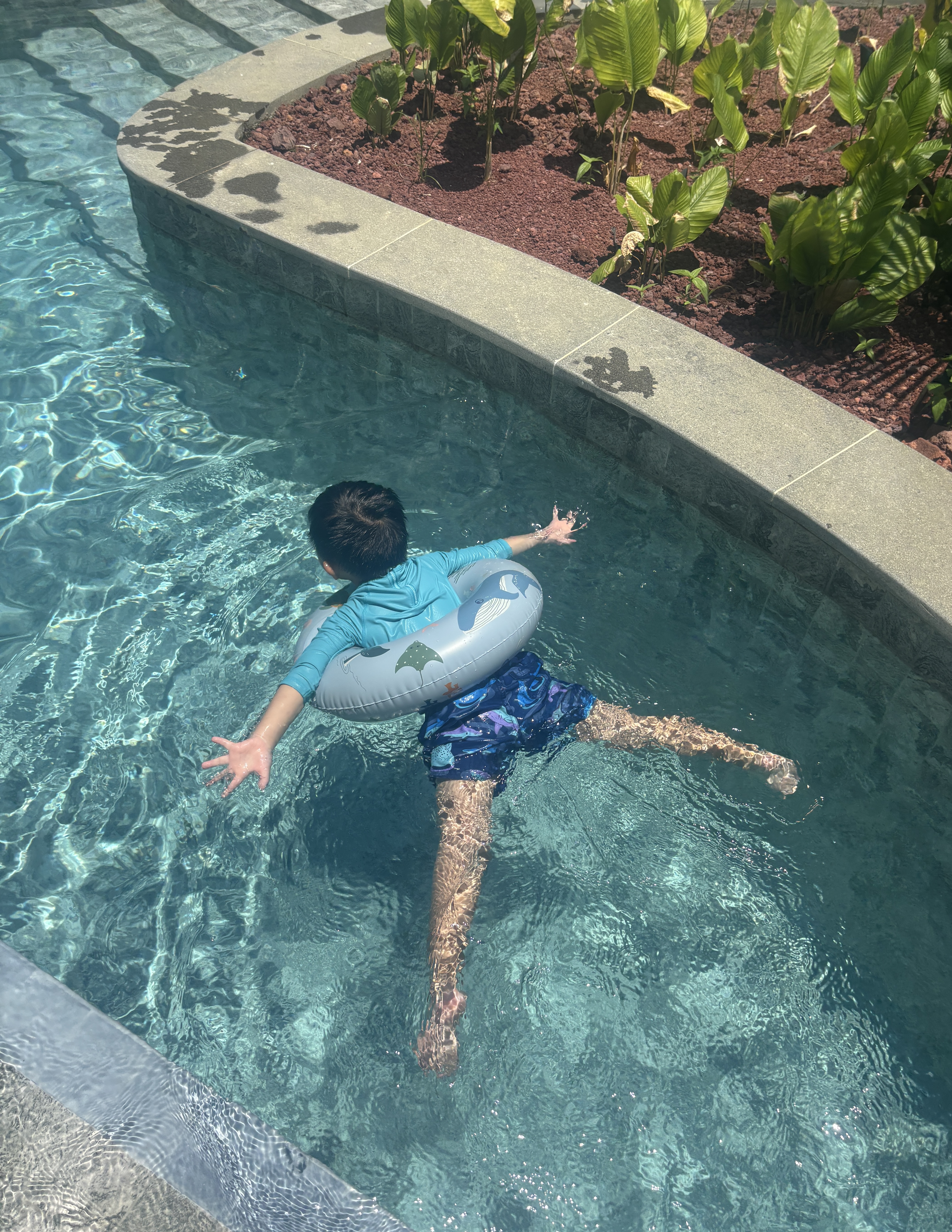 The moment the kids saw the pool, they scrambled to change into their swimsuits so they could jump in immediately — never mind the midday sun. They splashed around in with squeals of delight. The pool instantly became their world: mermaid make-believe, floaty races, and joyful shouts echoing off the water. By the end of the afternoon, they’d even made a new little friend from next door, bonding over splashes and shared pool toys.