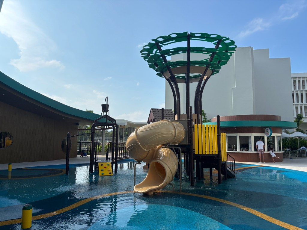 It was while we were splashing around that we realised something: we could actually swim straight to the water park just outside the Mangrove House. So that’s exactly what we did. The kids were thrilled — they spent ages going up and down the water slides, squealing with laughter each time they landed with a splash.