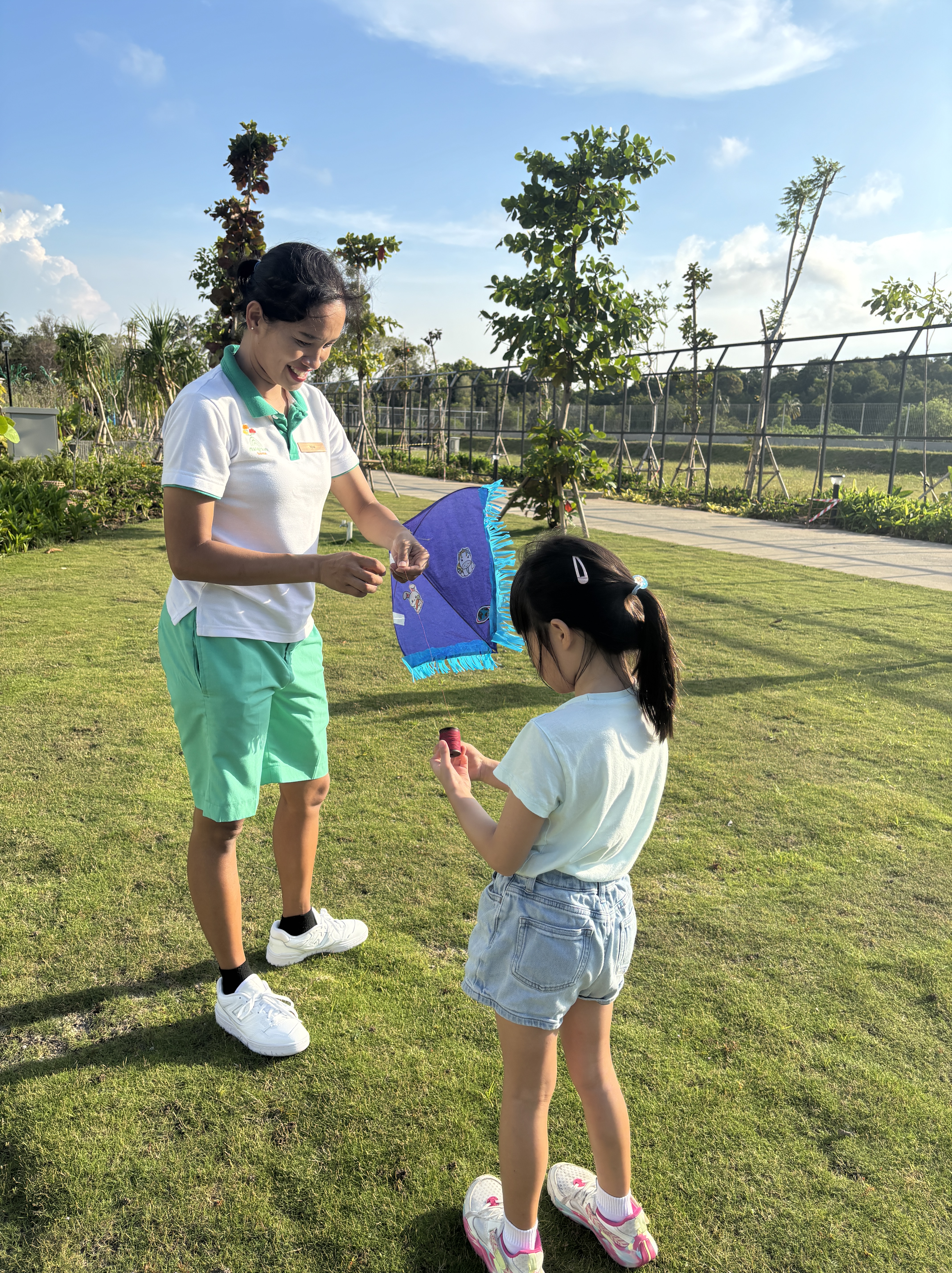 We also got to try kite making, and honestly, we were so happy to do this—how often do you get to make and fly your own kite in Singapore? The staff handed out colourful blank kites, and each child got to decorate theirs with markers and stickers. Once the masterpieces were done, we headed out to the grassy field nearby to launch them into the sky. It was such a simple but joyful activity!