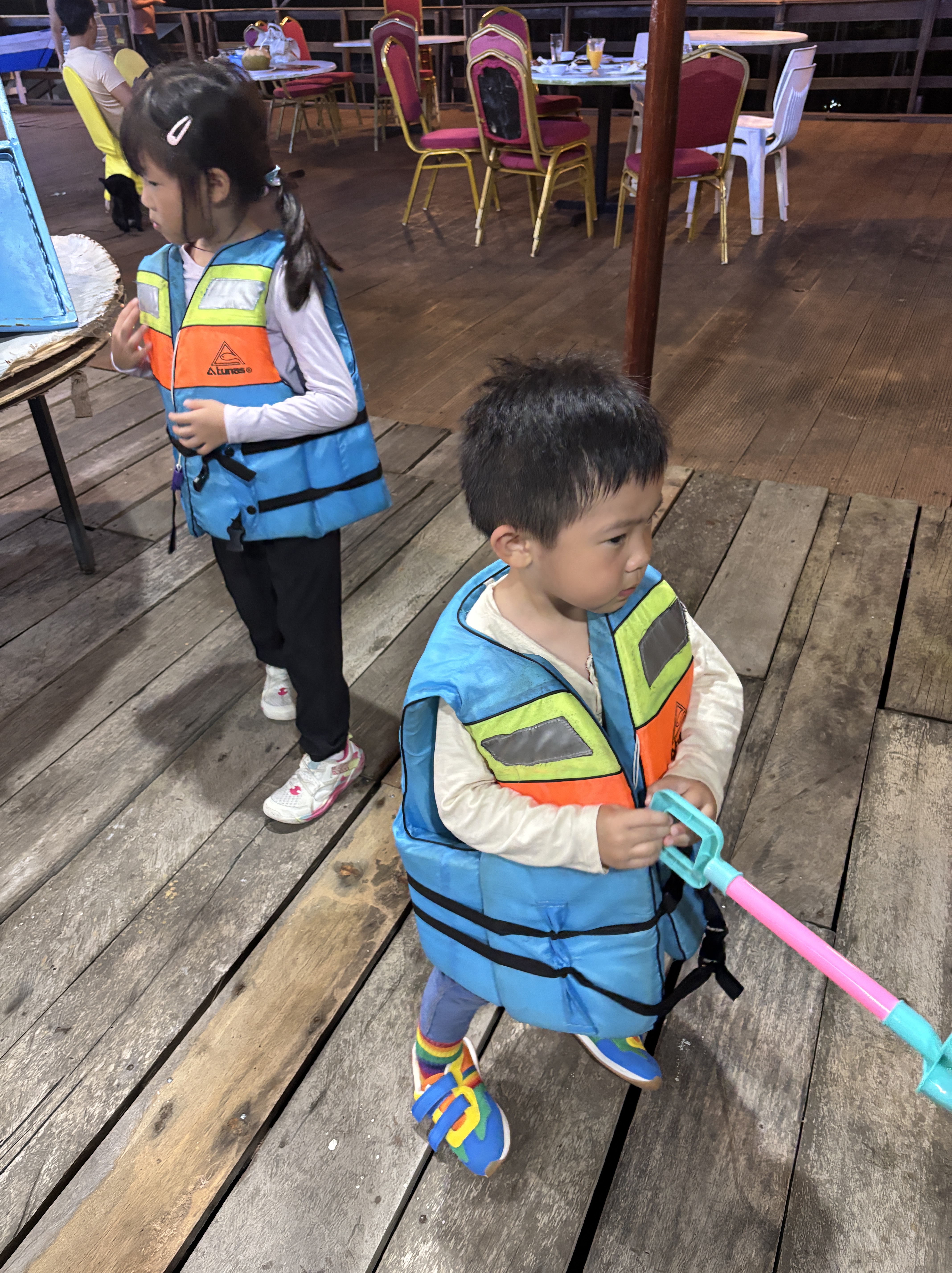 Thankfully, for the fireflies tour, it was a different story. The guide provided proper kid-sized life jackets, and I can’t tell you how relieved I was when they actually fit well. After our earlier kelong experience, it felt reassuring to know the kids were properly secured—especially since we were about to head out into the pitch-black mangrove waters.