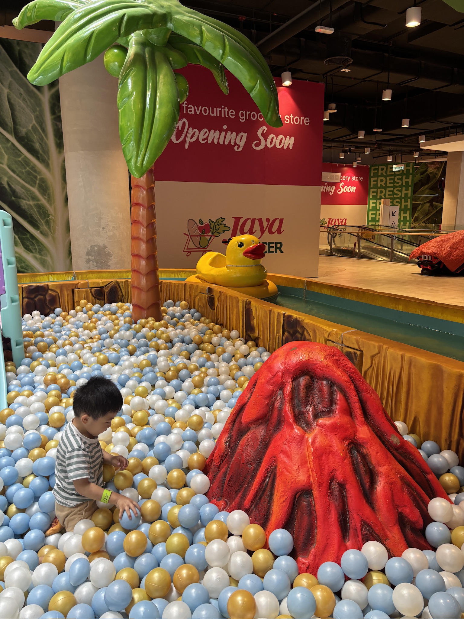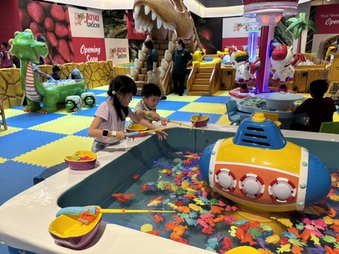 Inside, there’s a ball pit, a duck ride, a unicorn carousel, a kinetic sand station, and the highlight for our kids — a magnetic fishing game that had them hooked (pun intended). It’s not a big attraction, but perfect for a quick play break between meals and shopping.