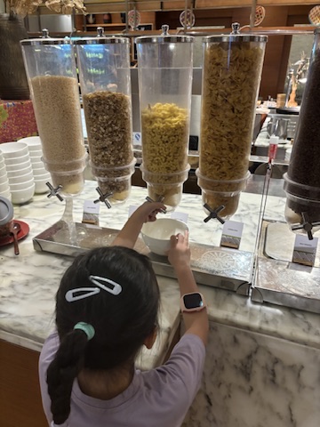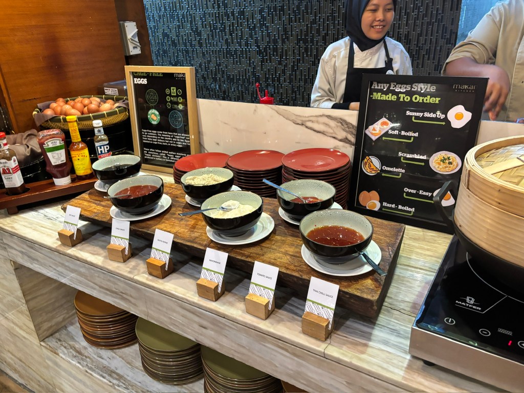 After a good night’s rest, we made our way down to the hotel’s breakfast buffet, which had a nice range of Western and Asian options. Besides the standard fare like cereals, pastries, egg station, waffles and pancakes, yoghurts and fresh fruits, they also had served up nasi lemak, kacang pool, dim sum, naan and curries.