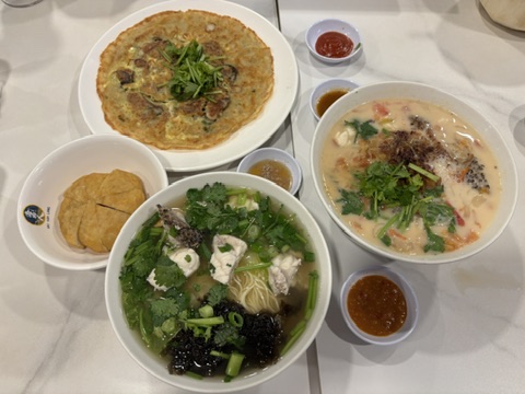 Each of us choose a soup type, noodle type and fish type so we all had our preferred combinations. Then we added on side dishes: oyster omelette and fish cake. The broth was truly flavourful, but the grouper was oddly a bit tougher than expected. Still, it was a solid bowl of fish soup.
