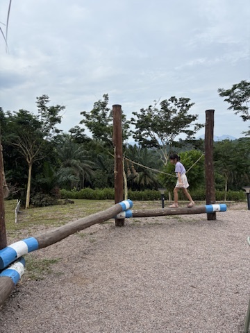 Finally, our loft cabin was ready. So while I went to collect our key cards, the kids played a little at the nature playground outside. They were so happy to find a mimosa patch!