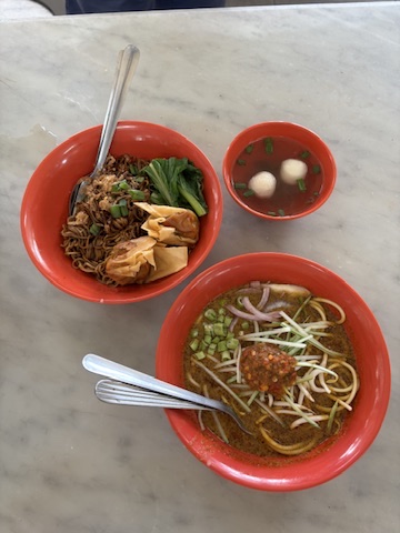 We also ordered the Laksa Johor and Wan Tan Mee to try. The laksa was interesting — like a cross between curry noodles and Penang-style assam laksa, with a thick, aromatic gravy and a mix of herbs. It’s a flavourful, slightly tangy bowl that might not be for everyone, but worth a taste if you’re curious. The Wan Tan Mee, on the other hand, was a hit with the kids — a non-spicy, dark-sauced version served with springy noodles and just enough sweetness.