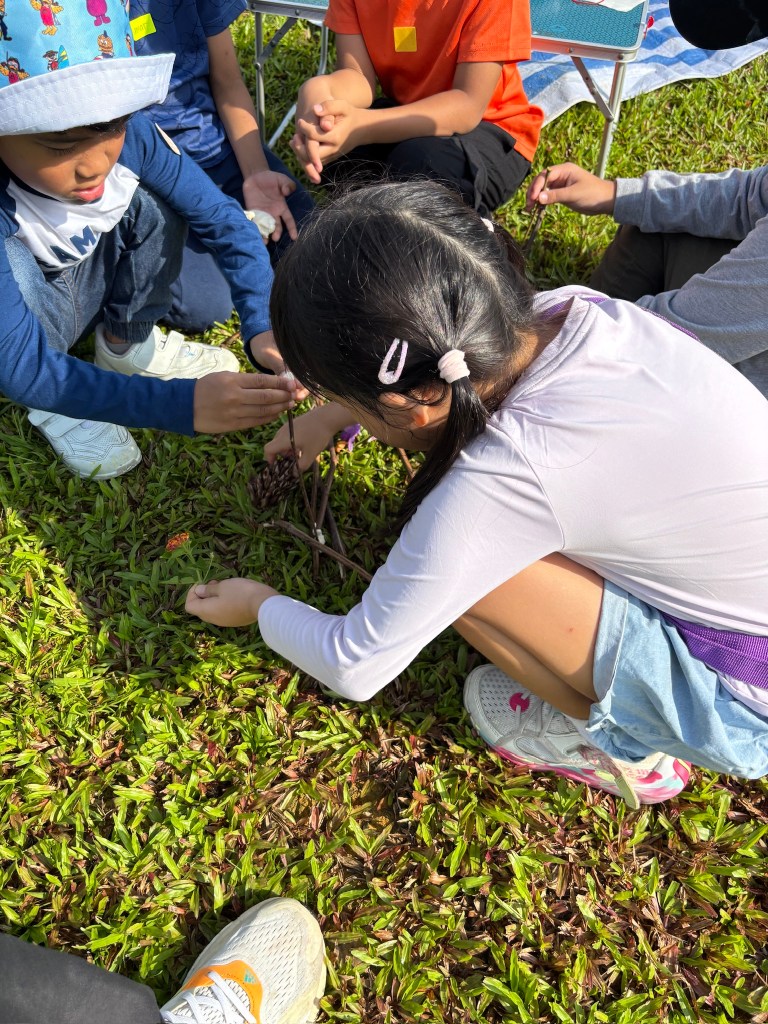 After that, the kids were led on a forest walk. On the walk, they spotted insects, unusual leaf patterns, and animal tracks along the way. The journals came in handy here too, as the kids collected natural materials, sketched and noted down their finds, just like field researchers.