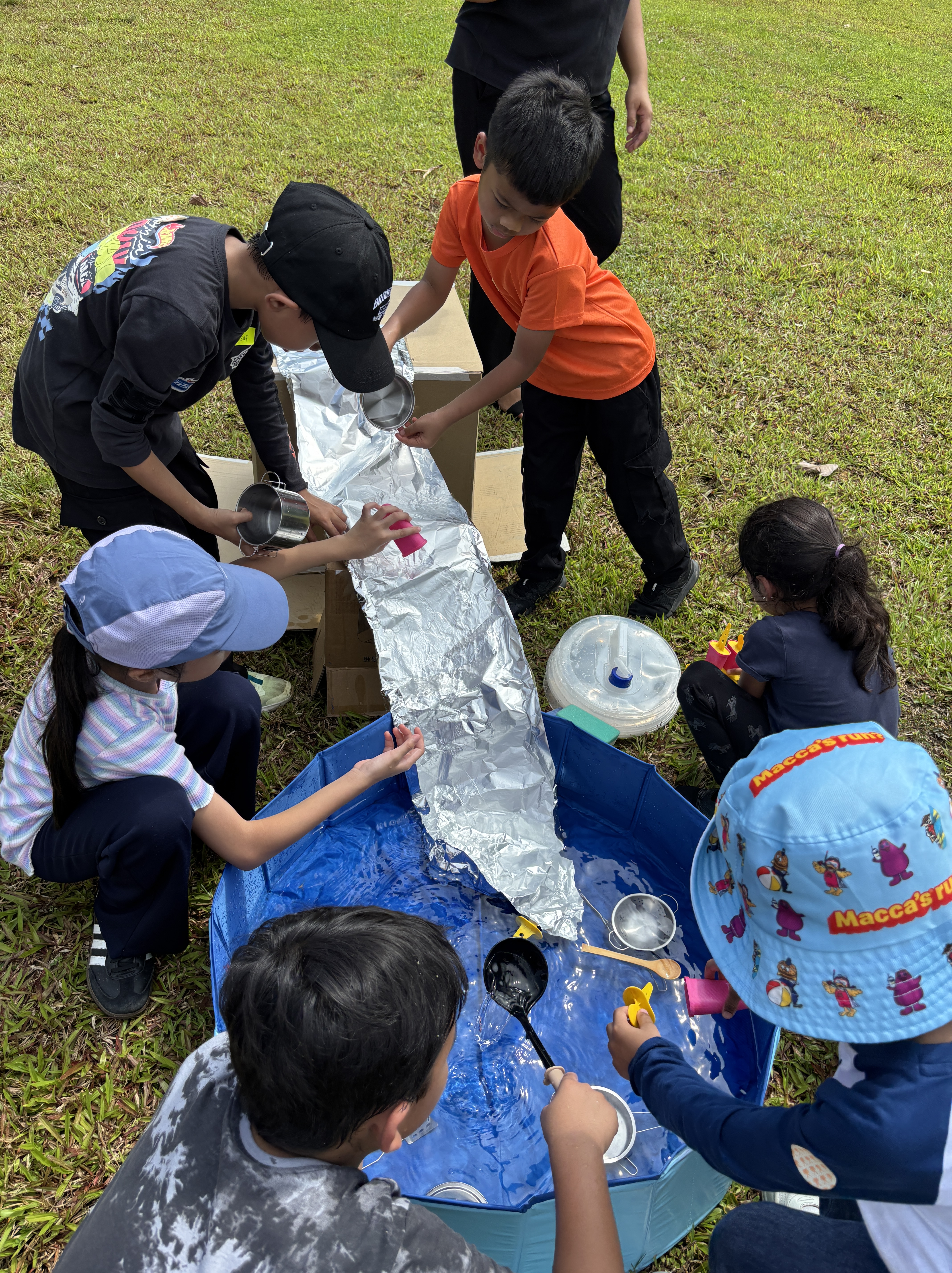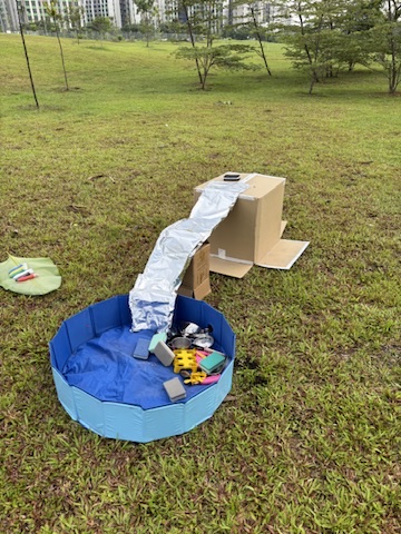 At the end of the session, there was an open-ended play session to work off their remaining energy. They learnt about physics as they poured and scooped water and balanced materials like aluminium toy.