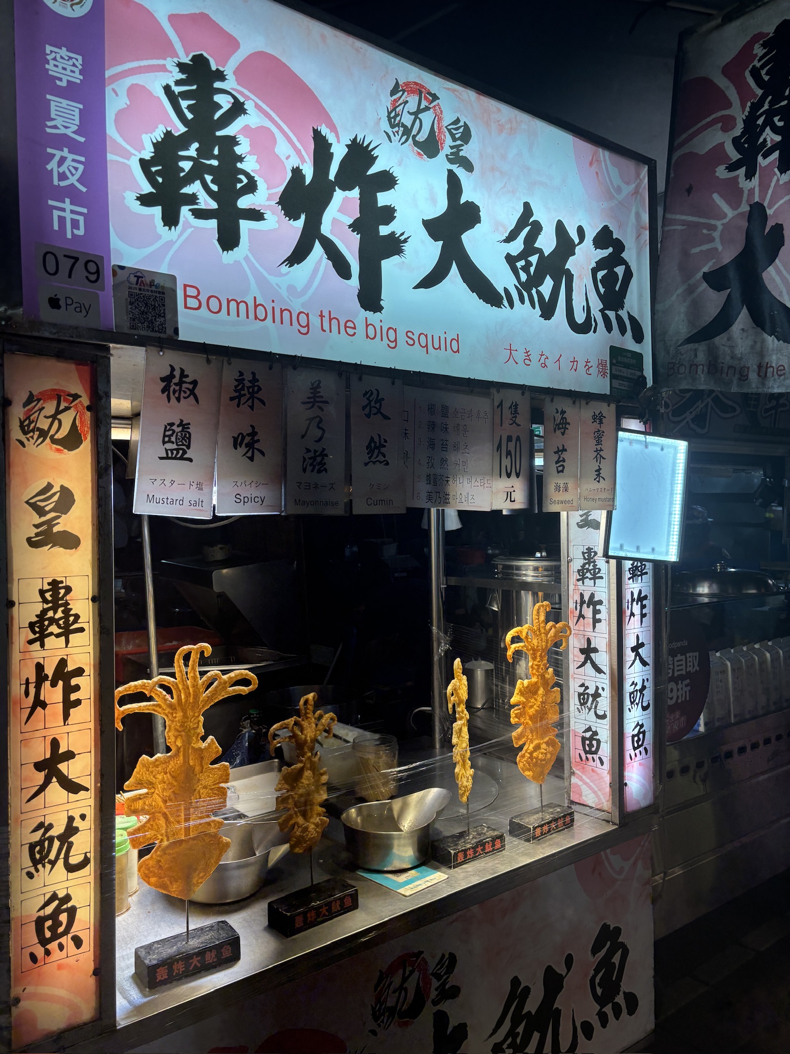 For dinner, we headed to Ningxia Night Market, choosing it because it’s smaller and less overwhelming — perfect for our four-year-old. It was also the nearest night market to our hotel, and we walked the entire distance, which made it feel even more satisfying.