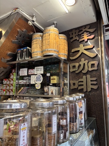 One interesting spot we stumbled upon was Fong Da Coffee, located just a short walk from the Red House. The scent of freshly roasted coffee beans — and the café’s unmistakable old-world charm — stopped us in our tracks. Established in 1956, the space feels frozen in time, with its retro interior and a whirring coffee roaster that’s still very much at work.
