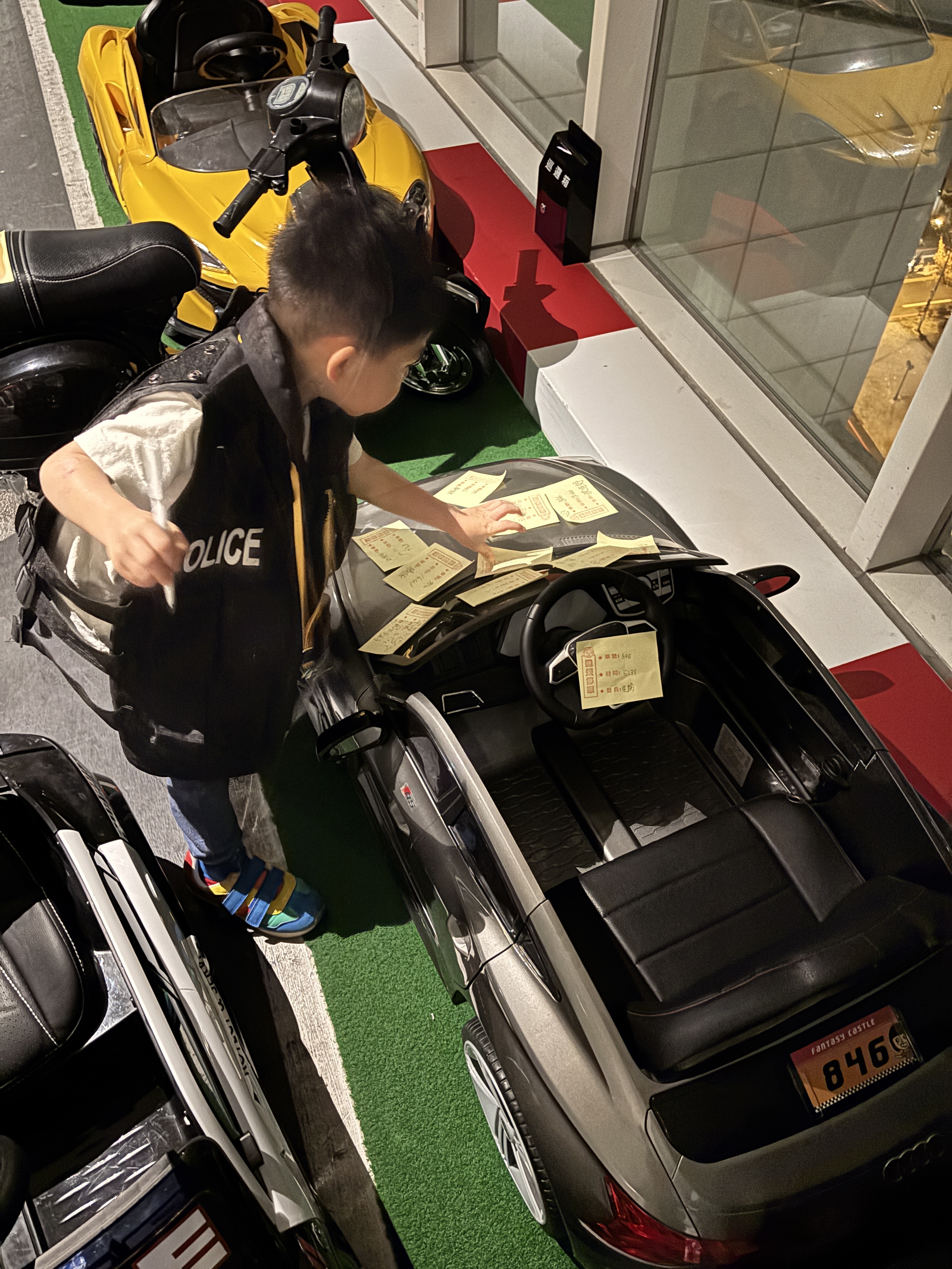 They had to check in at designated patrol points and even “hunt down” an errant car to issue a pretend summon. It was incredibly cute to watch — serious little faces, official-looking badges, and kids taking their roles very seriously!