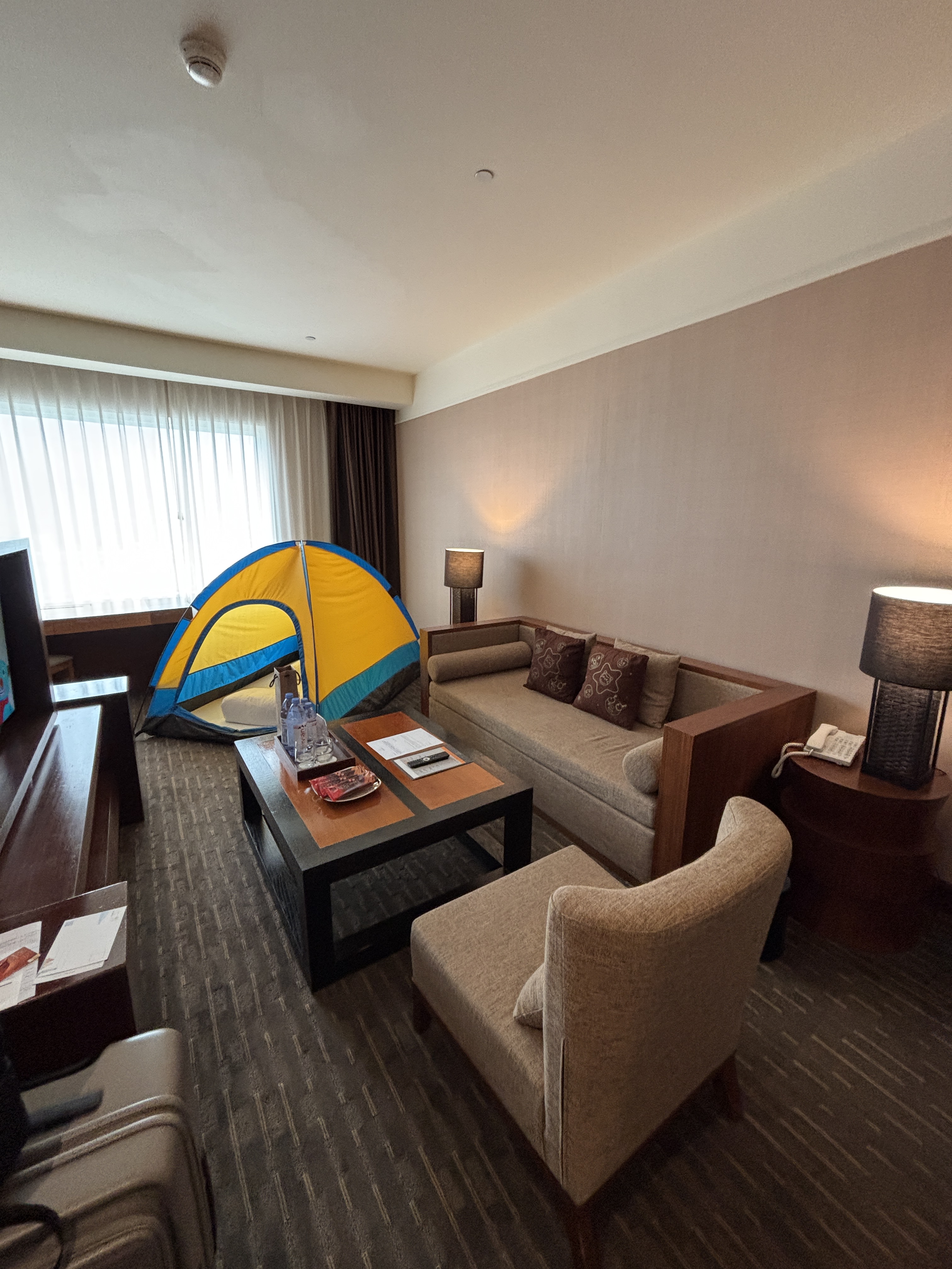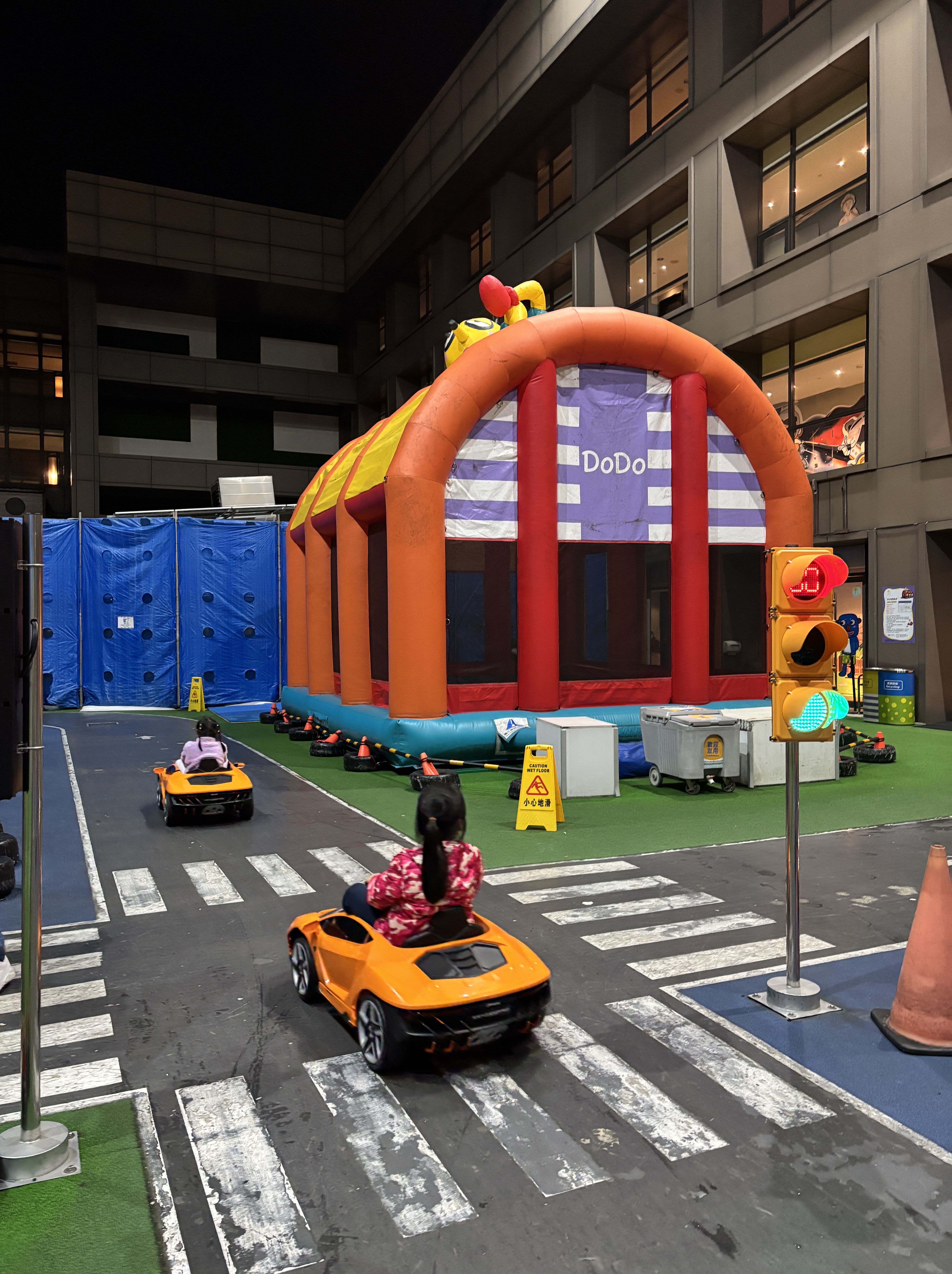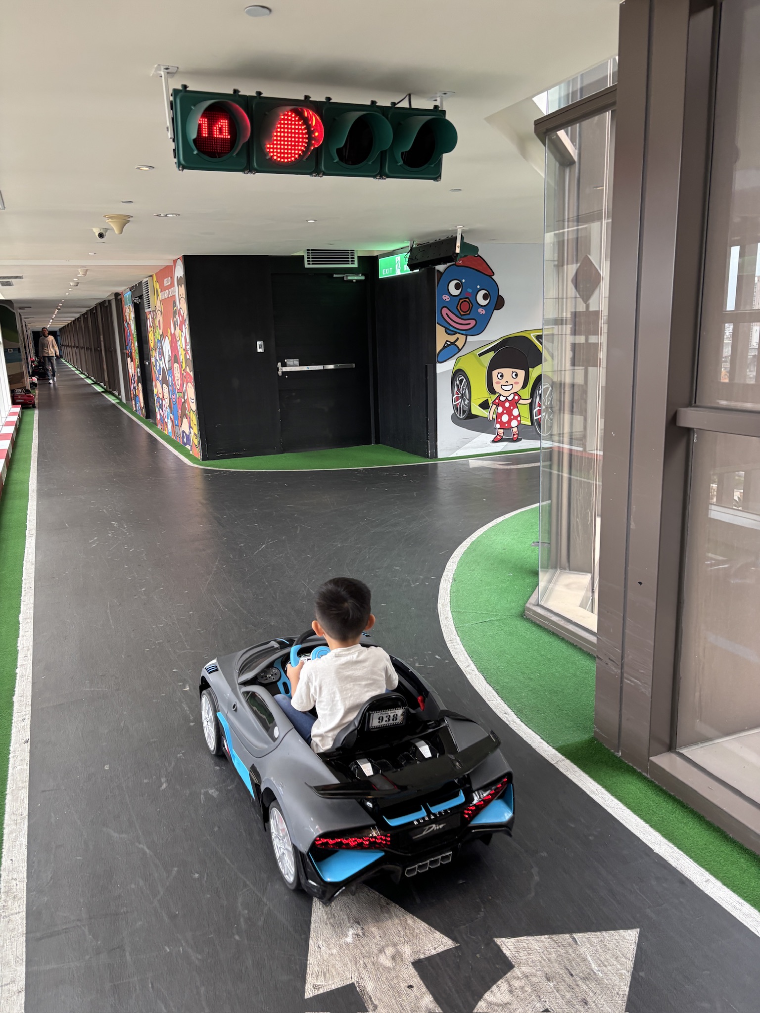 The whole reason we decided to visit Yilan was what YB affectionately calls the “car hotel” — Silks Place Yilan. He first spotted it on an IG reel — children steering little vehicles on an indoor car track — and from that moment on, he was determined that this had to be where we stayed.