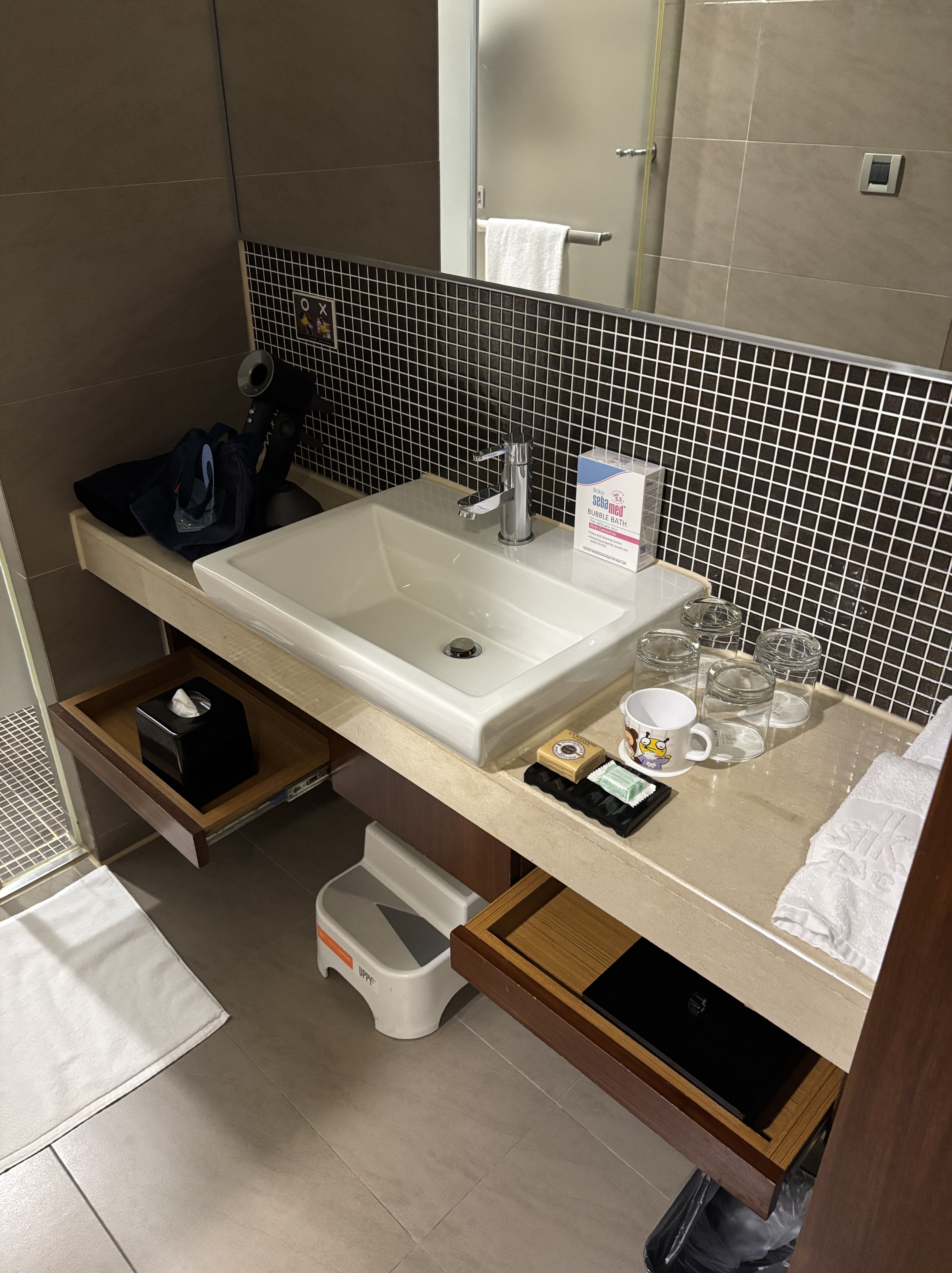 The hotel’s overall decor does feel a little dated, but it’s clear they’ve leaned hard into being family-friendly — layering in all these thoughtful details that genuinely make travelling with kids easier and more enjoyable.