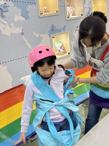 Besides admission tickets, we got an add-on ticket for J, our adrenaline junkie, to slide down a massive rainbow slide. The staff made me check with her beforehand, but knowing my daughter, she wouldn’t fear this at all. So while waiting for our timeslot to start the craft activities, she would do that first!