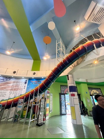 At Lucky Art, beyond the creative DIY activities, there’s a giant indoor rainbow slide that’s one of the factory’s highlights for kids (and adventurous adults). It’s Asia’s tallest indoor slide, spiralling down from high up inside the building in a dazzling cascade of colour. It’s 8-storeys tall, with a height of 27m!