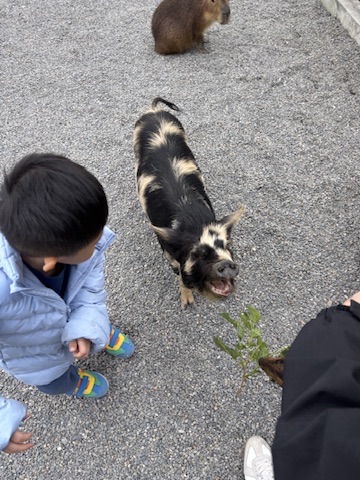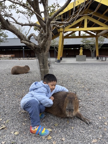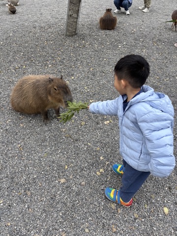 We spent the most time in Zone 2. The kids had so much fun feeding every animal. J began a friendship with a baby goat. Even YB gathered up his courage to hug his favourite capybara!