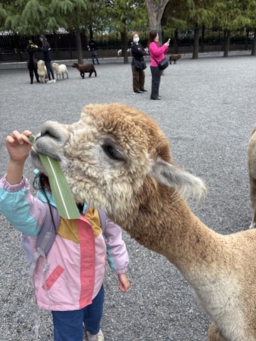 We were then let into Zone 1 with some leafy feed, which we were instructed to hold high because the animals are tall enough to nip them off your hands. Ahem, yes you, alpacas!