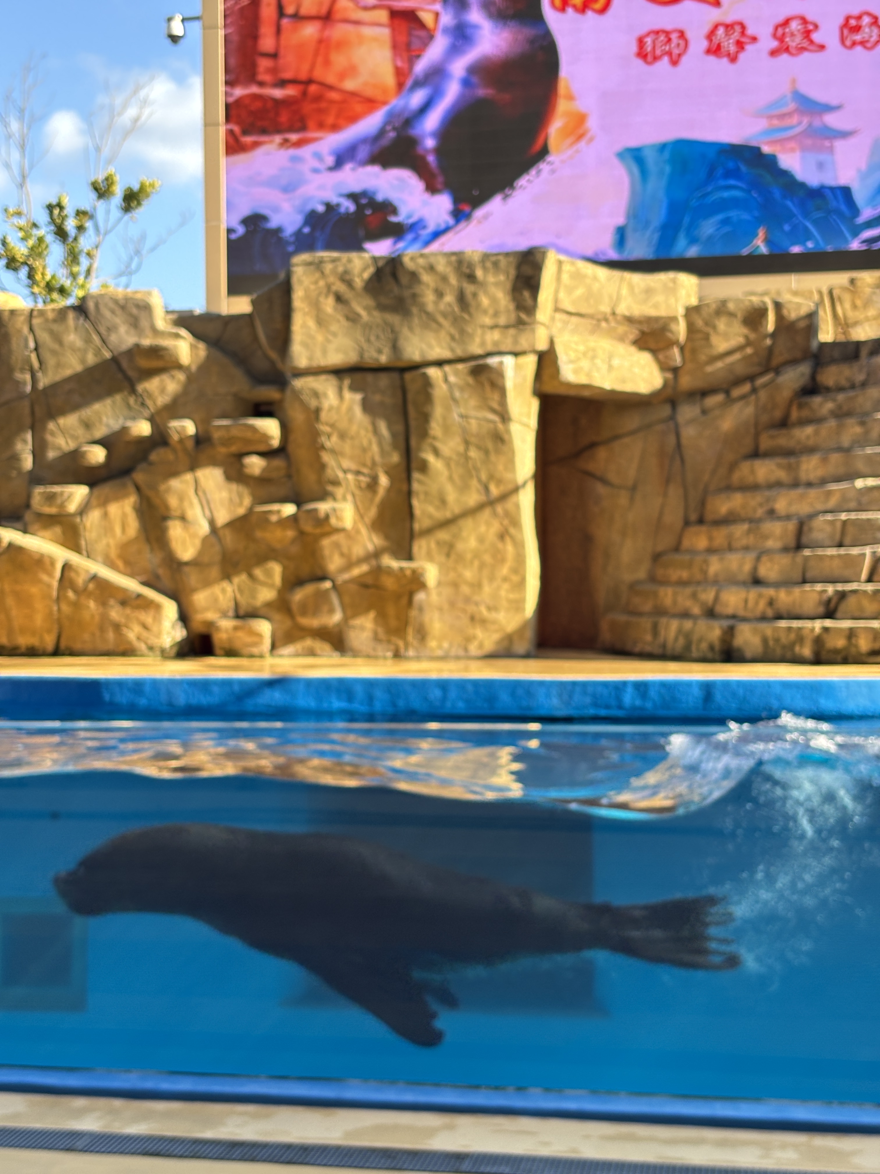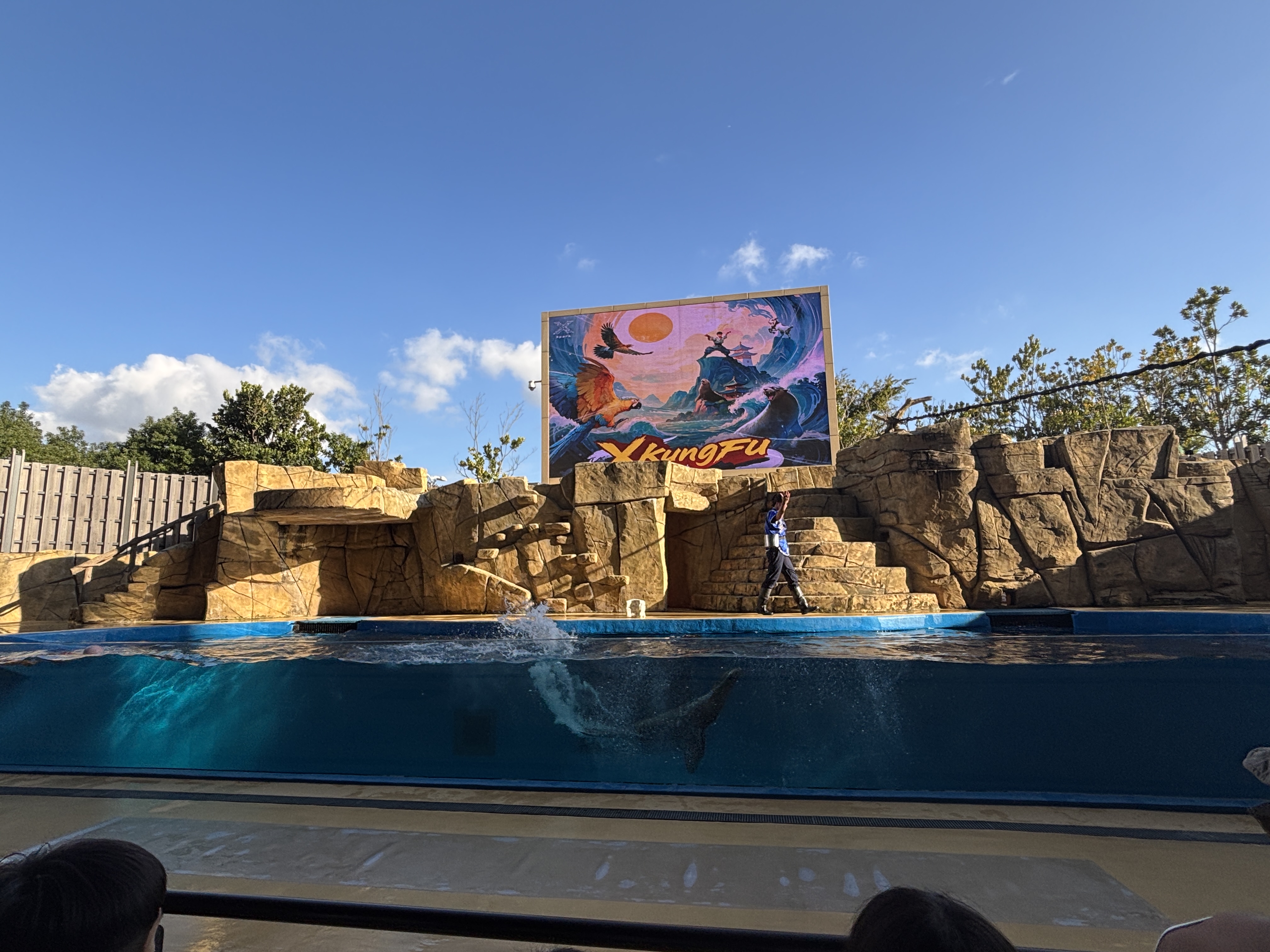 When it was nearly 3pm, we went back in and found seats easily at the outdoor theatre for the show. The performance featured a sea lion, who splashed, leapt and showed off its agility as part of a playful storyline themed around kungfu masters.