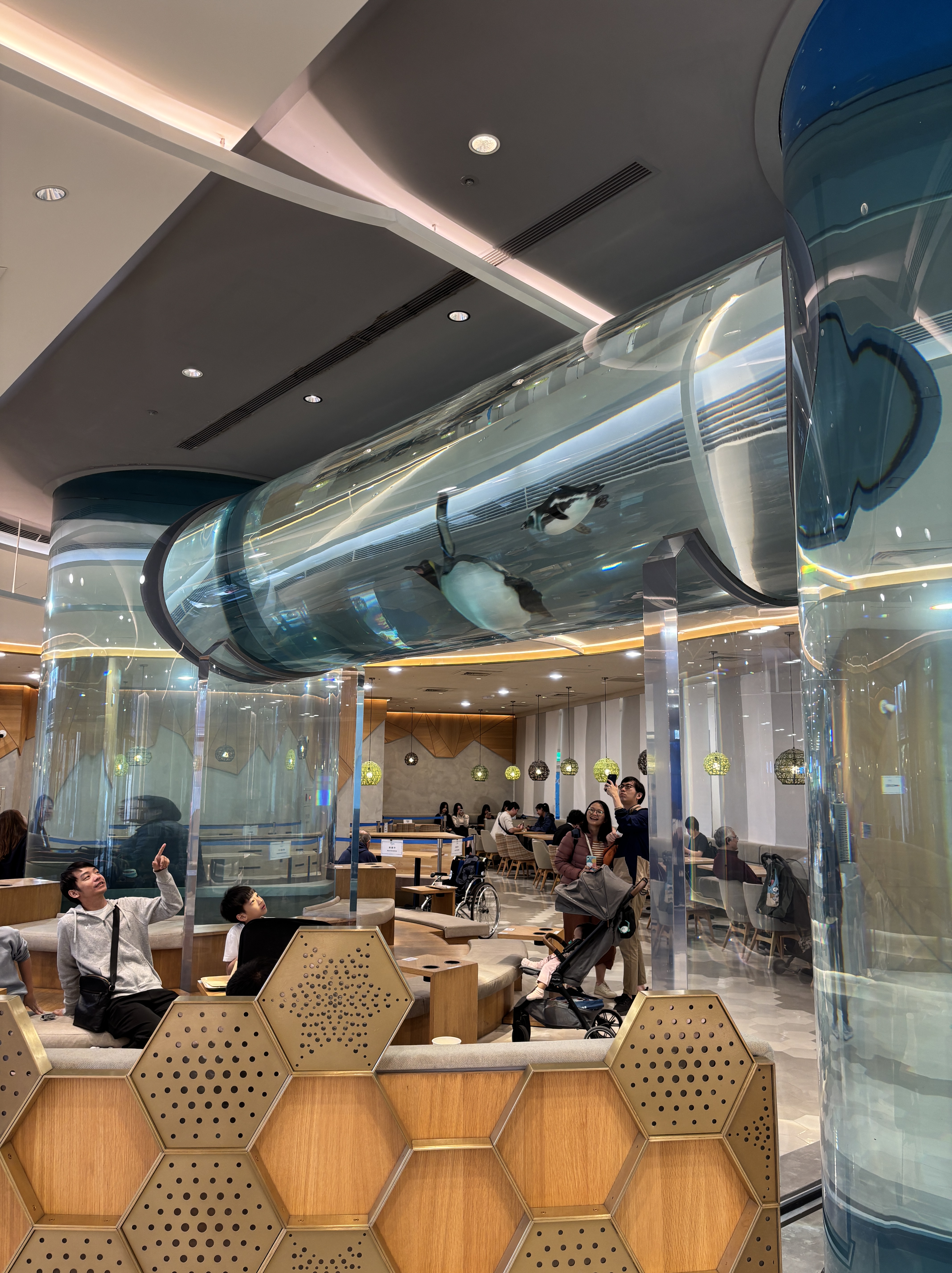 The outdoor theatre was just next to X-Cafe by Pronto, so we decided to order some coffee and cakes and wait there. The amazing thing about this cafe is that there is a here’s a transparent penguin swim tube / overhead channel that lets you watch penguins swim above and around you as you enjoy coffee and snacks. 🐧✨