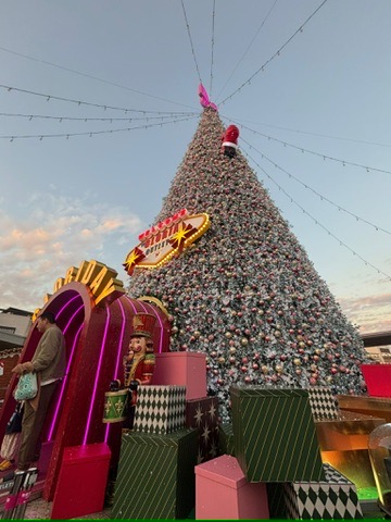 After dinner, we stepped back out and lingered awhile, soaking in the festive atmosphere. We happened to be there during Christmas, and the giant Christmas tree — along with bursts of fake snow drifting through the air — had the kids completely entranced. It was such a joyful way to end the day.